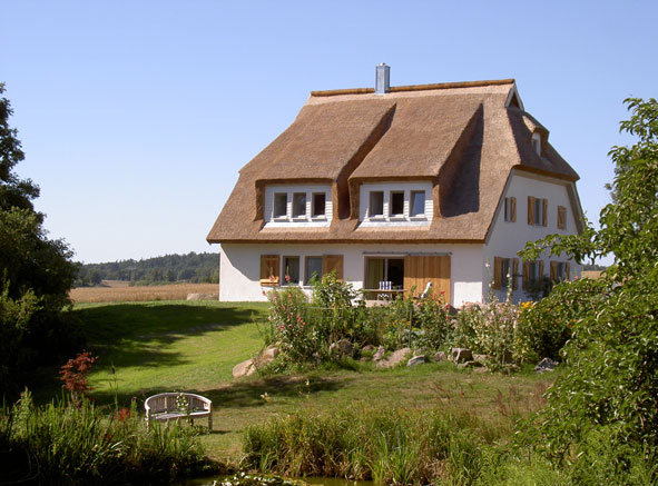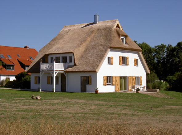 Sonnenhaus bei Putbus 2007-2009 Umbau eines kleinen Arbeiterhauses auf einem ehemaligen Gutshof zum Ferienhaus mit 4 Wohnungen für insgesamt 14 Personen. Die Grundrisse der Wohnungen sind sehr kompakt und genau auf die Bedürfnisse von Feriengästen zugeschnitten. Im Dachgeschoss stoßen sich auch groß gewachsene Menschen nicht den Kopf und trotz der Kompaktheit machen die Wohnungen einen sehr großzügigen Eindruck. Es wurde an alles gedacht und das liegt auch an den beiden Bauherrinnen, die nur das Beste für Ihre Gäste wollen. Für 2011 planen wir nun noch ein Saunagebäude mit einem eigenen Küchenbereich, damit die Gäste auch mal gemeinschaftlich Kochen können.