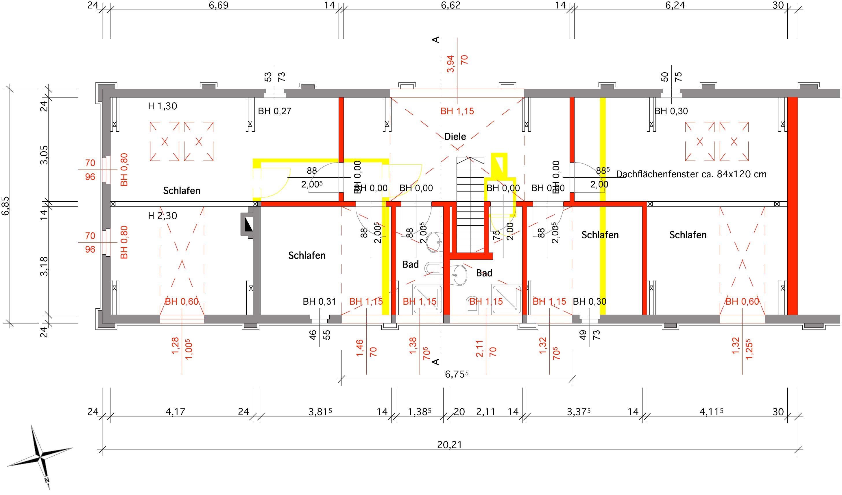Grundrissplanung Dachgeschoss.
